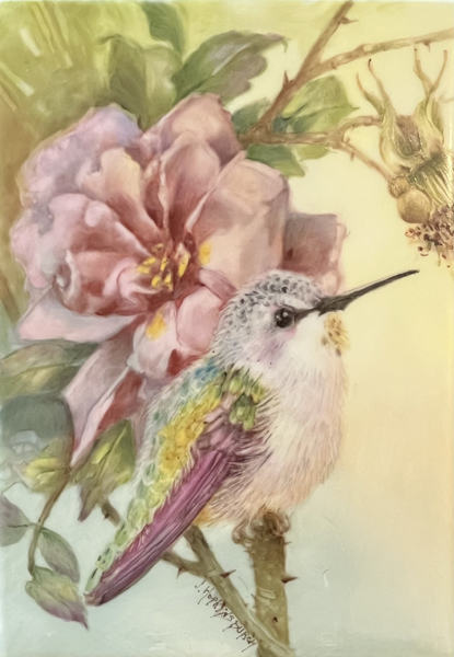 Hummingbird with Roses