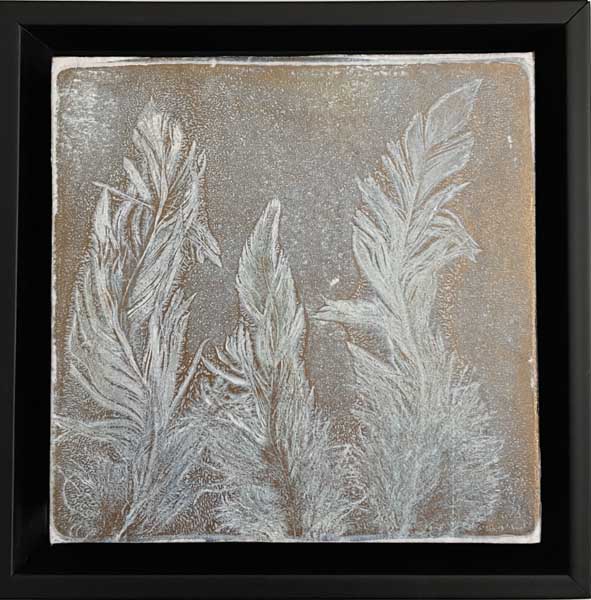 Monoprint collage with bronze metalic acrylic on fine art paper