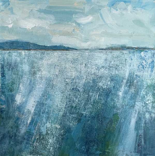 Collage with gel plate monoprints on cradled panel