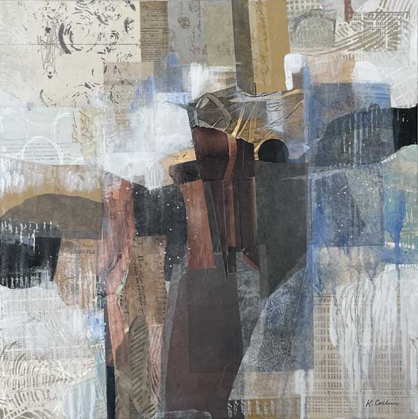 Collage, found papers, gel plate monoprints on canvas