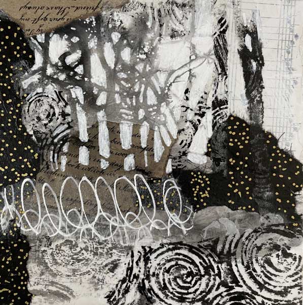 Mixed media collage on panel