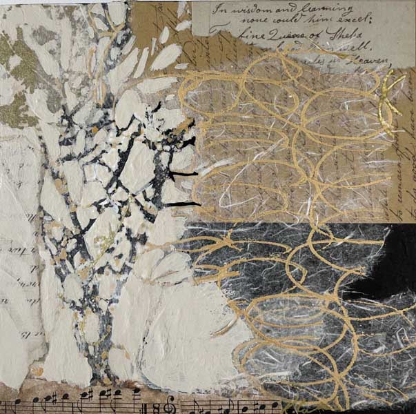 Mixed media collage on panel
