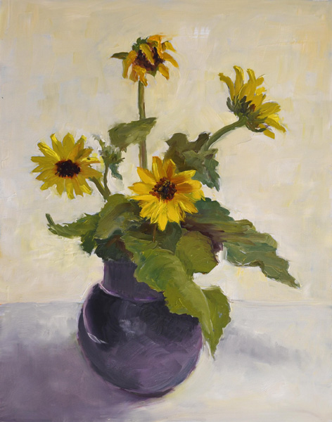 Sunflowers in Violet Pot