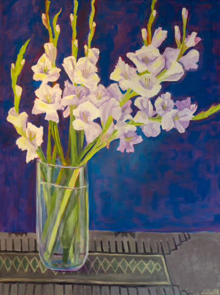 White Gladiolas on Navajo Rug
