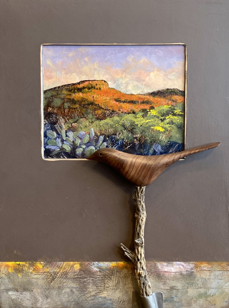 Mixed media, acrylic on wood panel