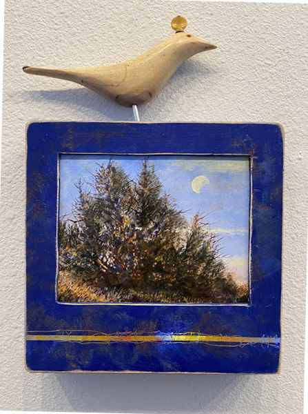 Mixed media, acrylic on wood panel