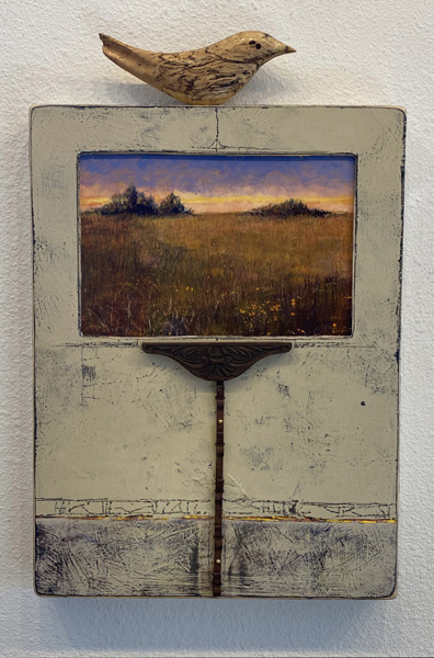 Mixed media, acrylic on wood panel