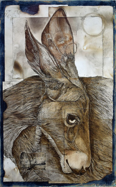 Acrylic, ink, and smoke-stained
