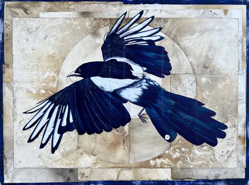 Acrylic, ink & smoke-stained