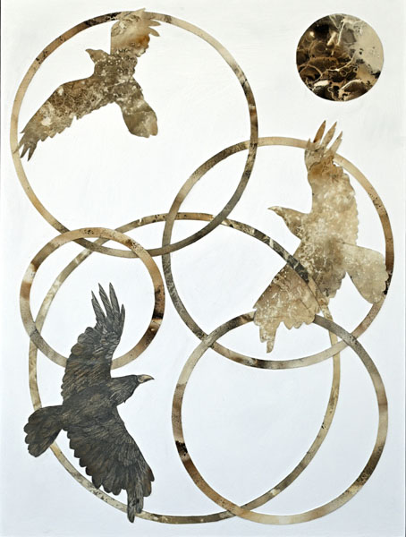 Acrylic, ink, and smoke-stained