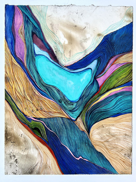 Acrylic, ink & smoke-stained