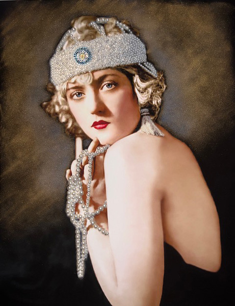 Colored in Photoshop, printed on velvet fine-art paper, hand-painted and embellished