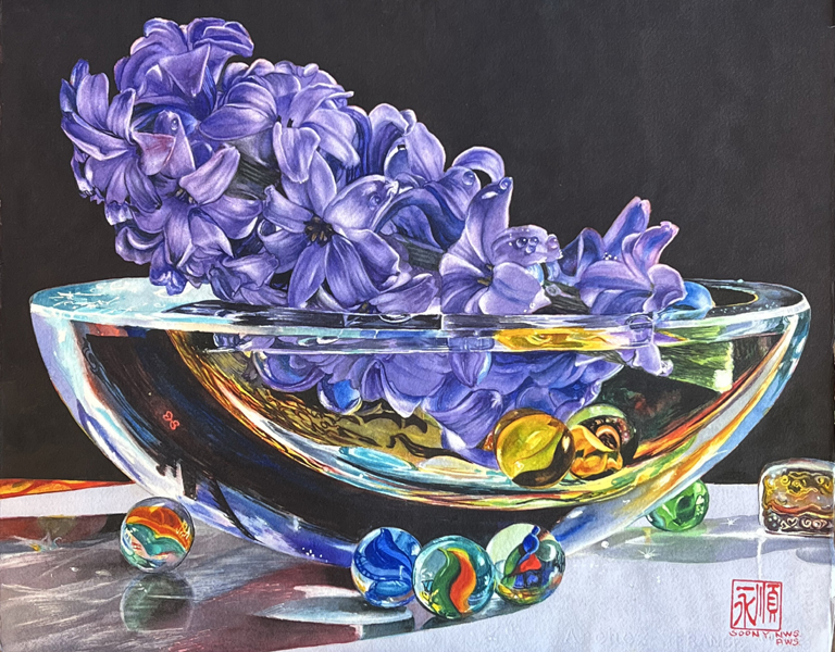 Hyacinth In Glass Bowl and Marbles