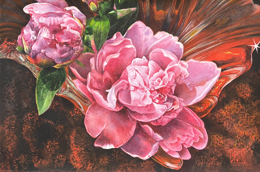 Peony In Glass Bowl