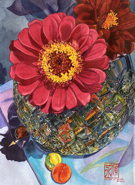 Zinnia and Crystal Bowl