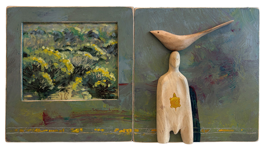 Rabbitbrush Billy L. Keen 12 x 24 x 2 in. Acrylic, relief sculpture, found objects, on wood panel |
